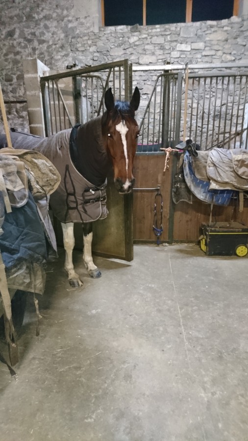 J'ai sorti la bride, dans l'idée je voulais travailler les appuyers au trot et le rassemblé au galop. Bah finalement cette bride m'a cassé les pieds