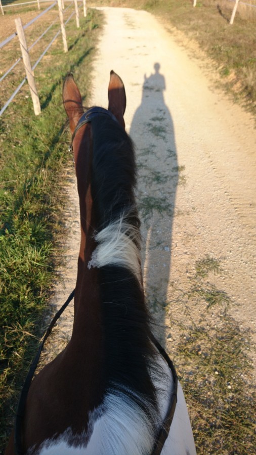 J’appréhendais énormément, au final ça c'est hyper bien passé! On a pu donc travailler appuyer aux 3 allures, les demis pirouettes, même à droite (bon elles étaient pas ouf), les changements de pied, les développements, même si donc au trot, c'est vraiment à retravailler!