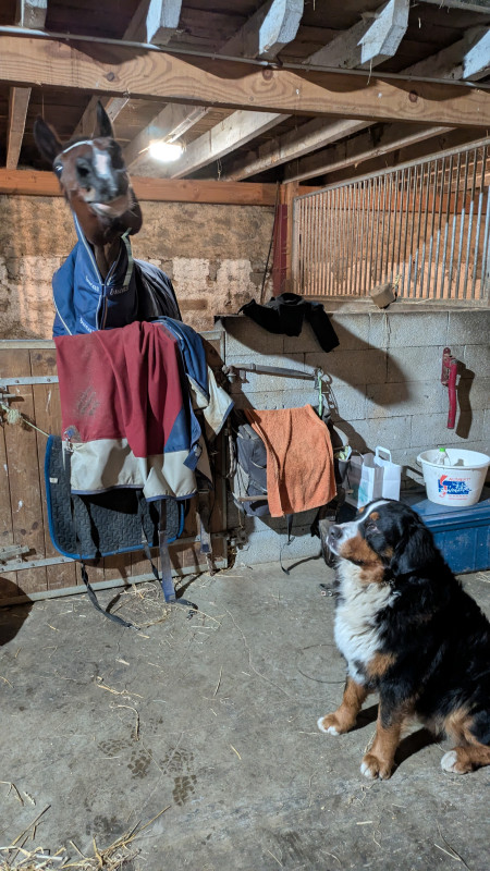 Alors mardi soir, fièvre mais moins que la veille, boiterie toujours, et engorgement du postérieur forcement... il marche moins (surtout qu'en plus il a changé de pré, dc vraiment il n'a plus besoin de se déplacer de touffe en touffe...).