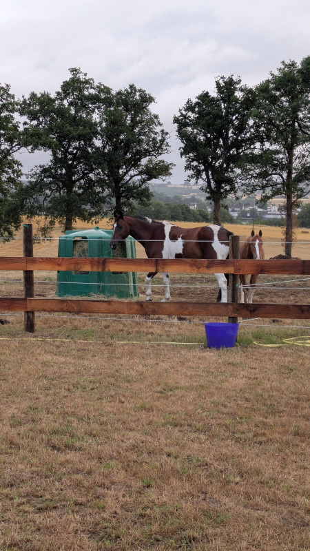 Retour maison, douche, nourrissage séparé (et j'ai même mis la gamelle d'orly dans l'abris, pour zéro visuel avec tom, ça le fait!). Et dodo. Je suis allée leur retirer les masques en rentrant de soirée, so pratique d'avoir des chevaux mi blancs!