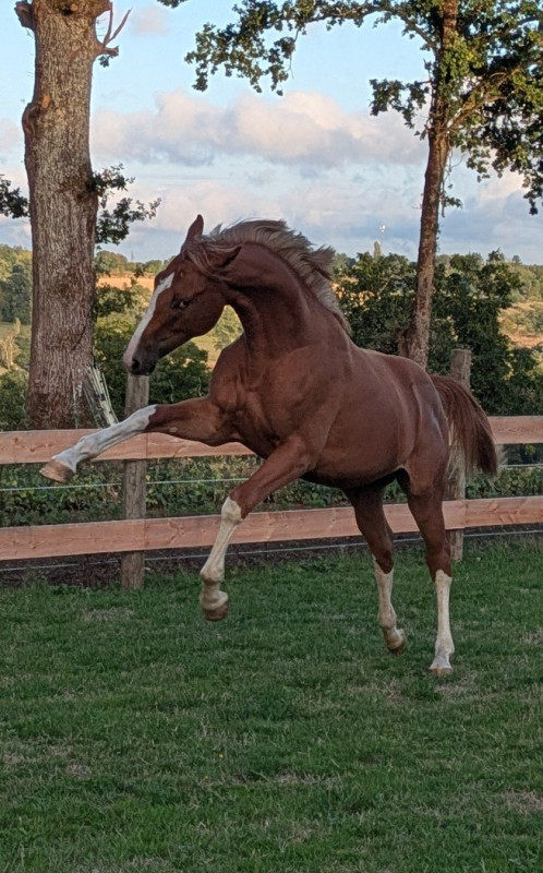 Cependant, les origines de celui-ci ont été plus réflechies.. Mr né le 2juin de 2010, de père KWPN de dressage, homozygote pie (Ringo), et avec une mère SF, iso 14O (Divine de kerbader), utile pour du dress!