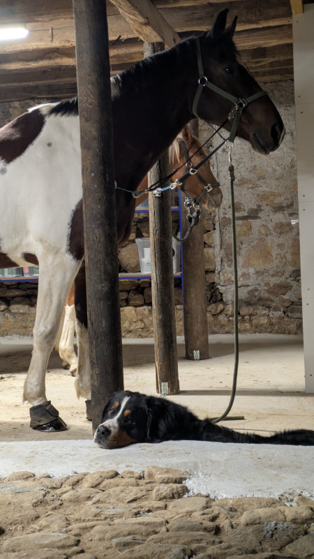 Donc j'en ai énormément voulu à mon conjoint que j'avais allégrement prévenu sur la nécessité d'avoir un sol sans tarder, voulu à moi d'avoir continuer à monter dans mon pré pas ouf et à la "vie", de me faire encore subir les désagréments de cette putain d'arthrose.