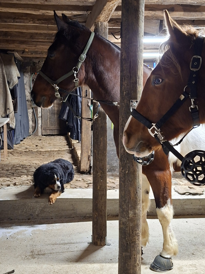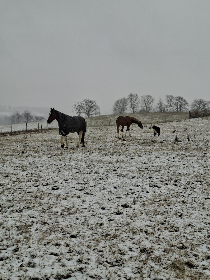 Le grisou, je ne l'ai monté qu'une fois durant ces 3 dernières semaines, entre les travaux, le gel, je n'ai pas eu plus de dispo. Sa proprio avait changé de mors, pas fan du rendu. mais il a progressé au galop, me suis fait plaisir encore une fois.