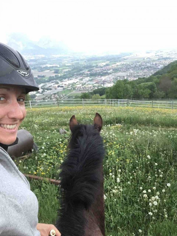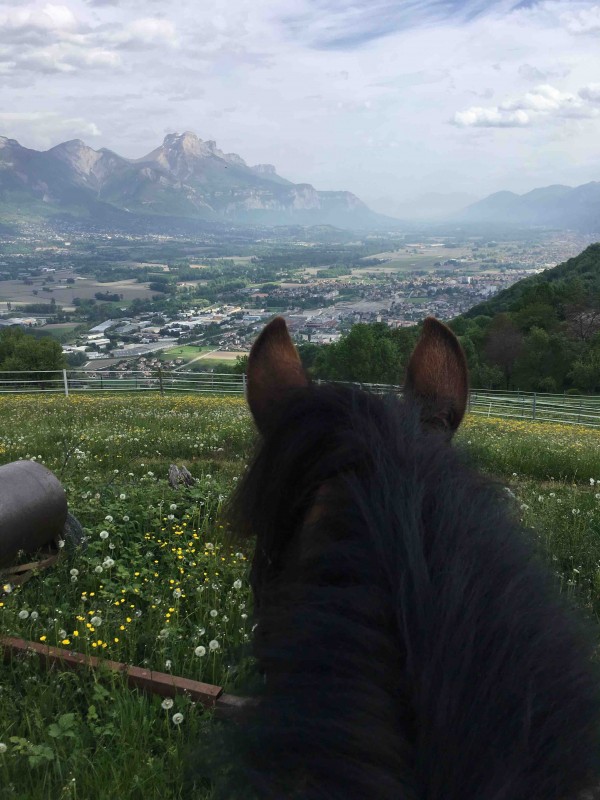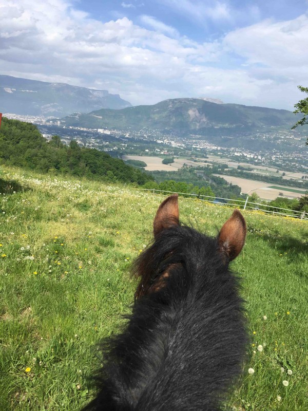 8h10: on est à cheval pour la détente. Une juju qui regarde mais qui est sage on a de la place malgré le monde sur la carrière