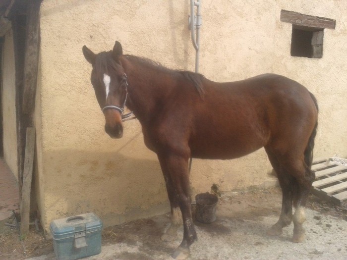 (en plus, on aperçoit la bouille du mien sur la photo de ta 1er visite chez Chantal, dans la stabulation... et oui, le petit alezan qui se cache derrière c'est Bilto ! )
