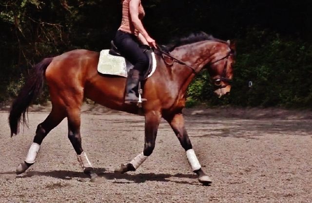 On a commencé par le dressage, c'était la club 1 (qu'on fait souvent mais en D2), dans une carrière limite cross lol, très vallonnée, il manquait des lettres, certaines étaient pas en face de celle de l'autre côté, y'avait une mare dans 1/4 de la carrière, des barres avec des plots pour faire une place au jury en C... Bref, on sent que c'est pas une écurie de dressage! Mais bon, la mienne fait du CCE au départ, alors ça l'arrête pas! Elle a fait une super reprise après une détente un peu poussive (je crois que le petit manège profond ça l'aide pas, quand même).