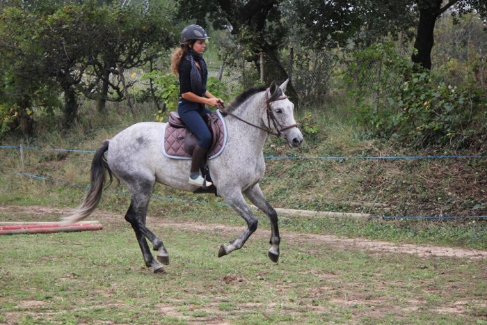 La ponette est toujours « pas si mal ». Les cessions à la jambe droite sont, pour moi, très correctes contrairement à la gauche qui sont plus difficiles/heurtées. Il aimerait là aussi plus de croisement.