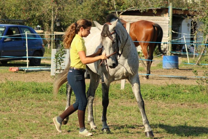 Il m’a de nouveau aidé en la chopant. Il m’a même pris mon stick et là, j’ai eu un peu honte car Vilaya s’en fiche royalement. Puis il m’a expliqué l’importance de ne pas trop les tenir sur la rêne extérieur et d’avoir une main douche. Il faut instaurer un dialogue avec elle.