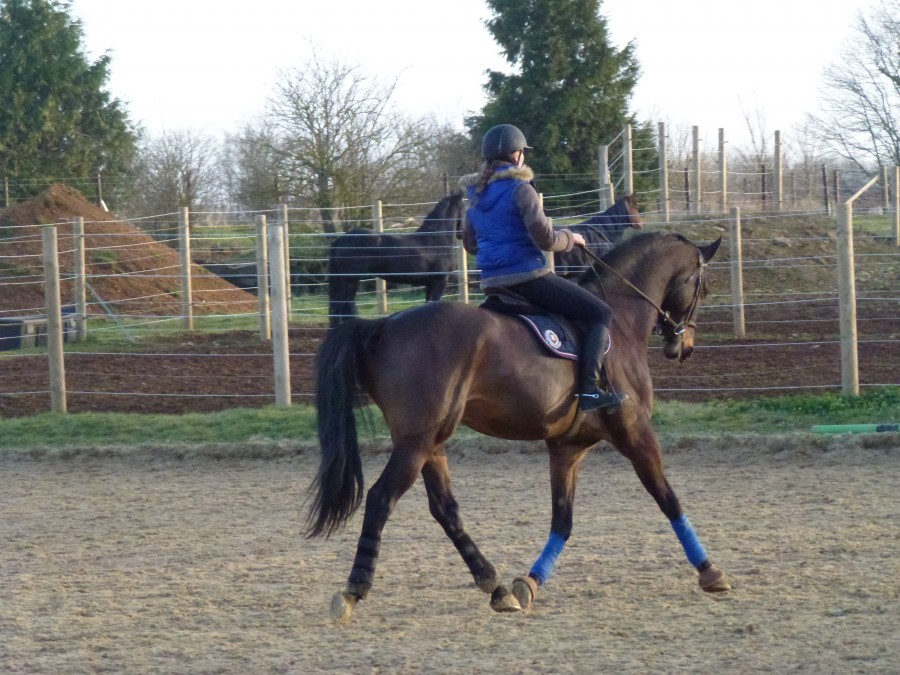 avec cette mise en main , mes seances montées sont d environ 2O mn car c est beaucoup plus exigeant pour le cheval , tant physiquement que psychologiquement ....ça lui apprend a se soumettre a ma volonté sans qu il y ait douleur ou contraction mais dans le déploiement juste de ses allures avec moi sur le dos .....il faut du temps pour l accepter avant de pouvoir réaliser des seances de 40 mn au trot assis ....la j aurais une belle position et pourrais rentrer vraiment dans ce qu on appelle le dressage ....avant ce n est que de la préparation et la suite du débourrage ....