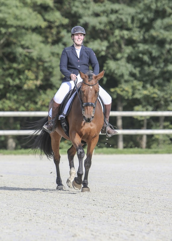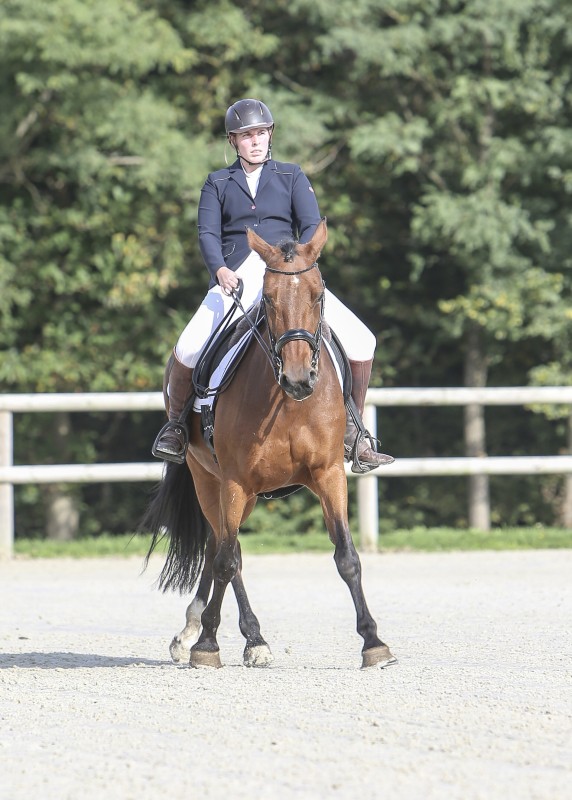 Il a pas trop regardé l'environnement, enfin il a regardé mais rien dit, moi dès qu'il pointait les oreilles j'attendais qu'il explose mais en fait non, c'est aussi le côté marrant du cheval qu'on connait mal (je lai monté 3 fois), c'est que ça réagit pas pareil que les nôtres! J'ai eu l'impression de me faire secouer comme un prunier au trot, au final vu les notes et au débriefing des copines pas tant que ça. Par contre j'ai beaucoup remonté le talon pour les jambes isolées, c'est moche! Au pas un poil flottant sur la piste mais ça a été, et au galop c'est un bonheur, il a un petit galop confortable et cadencé, ça me chance de la mienne qui est toujours sur le points de passer du côté obscur et de s'énerver!