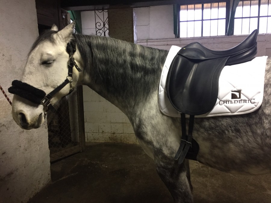 le deuxieme challenge c'est de le garder cadencé et en equilibre il a tendance a precipiter a mort des qu'il peut. donc encadrement / echauffement du dada sur des huits et des serpentines.