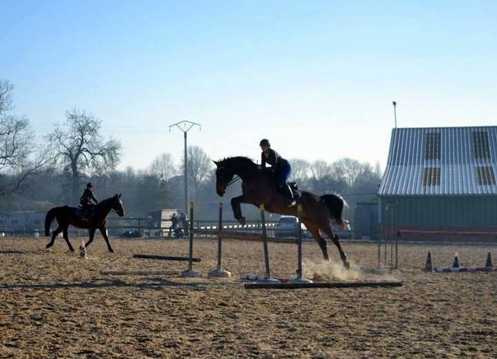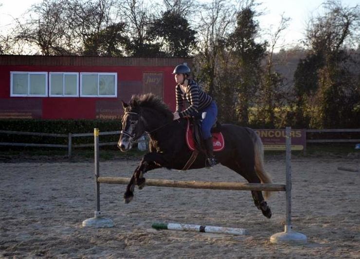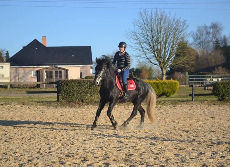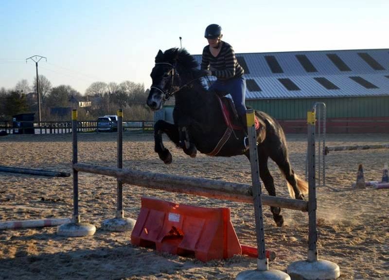 Black c'est le genre de poney blasé qui fait tout sans émotion.. donc j'essaye depuis que je le monte de lui donner le goût du travail par le jeu.. et bah ça commence à bien fonctionner. Sur le parcours je l'occupe en permanence, je ne le laisse pas galoper seul, on reprend, on ravance. Et histoire de l'inciter à pousser un peu plus sur ses barres, on commence à le compacter un peu dans les abords, et quand poney se prend au jeu, ça gicle dans les dernières foulées punaise !!