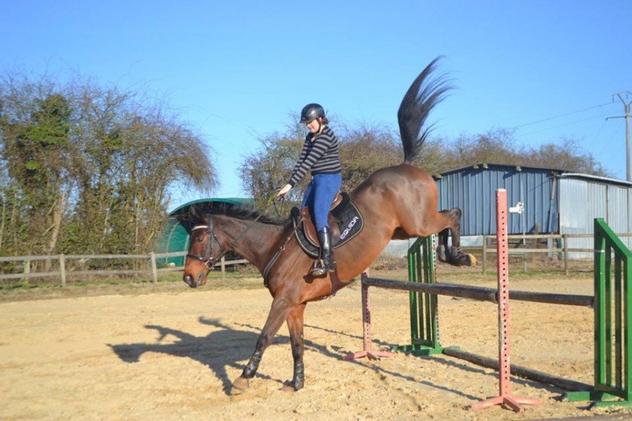 Il m'a même défoncé le dos.. Il était vraiment en mode je prends tout de loin pour pouvoir pousser comme un cinglé, donc j'ai insisté sur le dernier enchaînement à tout prendre de près.. Oxer en montée, il commence à frapper pour accélérer, je le maintiens en jouant dans mes doigts dans la cadence voulue, sauf qu'il a frappé son petit pied comme un timbré, et bibi je sais pas pourquoi elle avait les épaules un peu avant, donc le machin a monté les épaules pour sauter et ne pas que mamie le gène.. grosse douleur d'un coup dans les lombaires.. mamie a pas aimé.