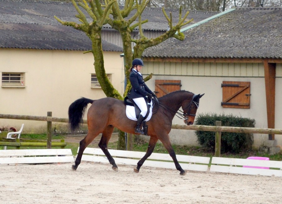 en manège j'ai même plus besoin de toucher au gogue. En carrière c'est un peu plus compliqué par ce qu'elle est distraite par tout ce qui se passe autour.