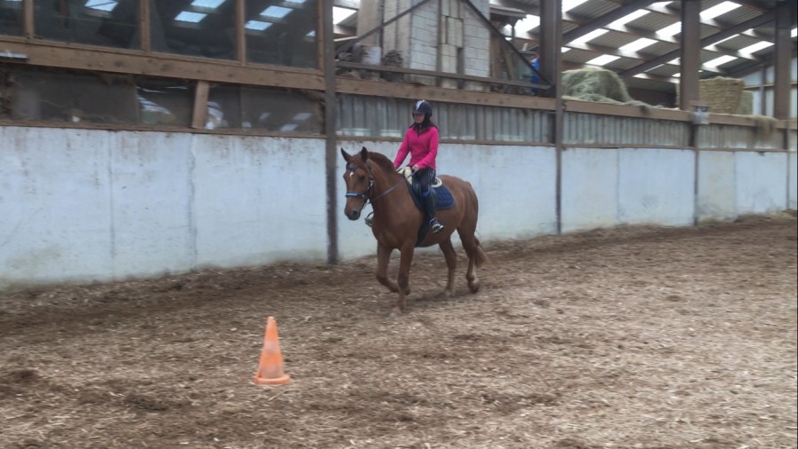 On galope, cadence lente, on cherche l'extension et la montée de dos. On trotte, cadence lente, 8 de chiffre, voltes, barres au sol. Léo commence à vraiment bien donner son dos, pfiou ça y est on arrive à le mobiliser !! Jolies extensions, top sensation sous la selle
