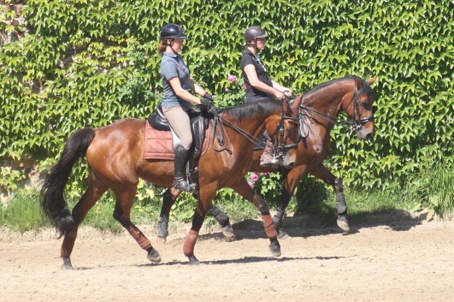 et ensuite au galop les chevaux commencaient a etre cuits mais l'idée c'est qu'elle a vite tendance a passer a 4 temps. donc rythme rythme rythme (ca je sais, c'etait un peu la meme idée que ce que me fait bosser sara) . on a fait EEA, rectitude et equilibre, mais clairement on a pas axé fort sur le galop vu la temperature et l'etat de serpillieritude de nos dadas (et de moi meme ...)