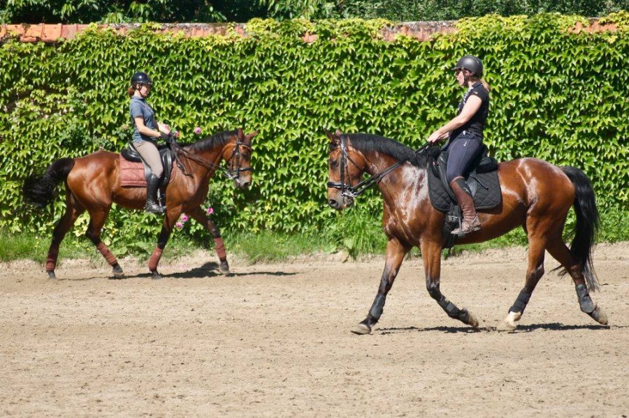 - alterner avec des hanches en dedans ce qui permet de mobiliser le dos du sacro illiaque au garrot et donc de ne pas avoir un cheval en deux parties.
