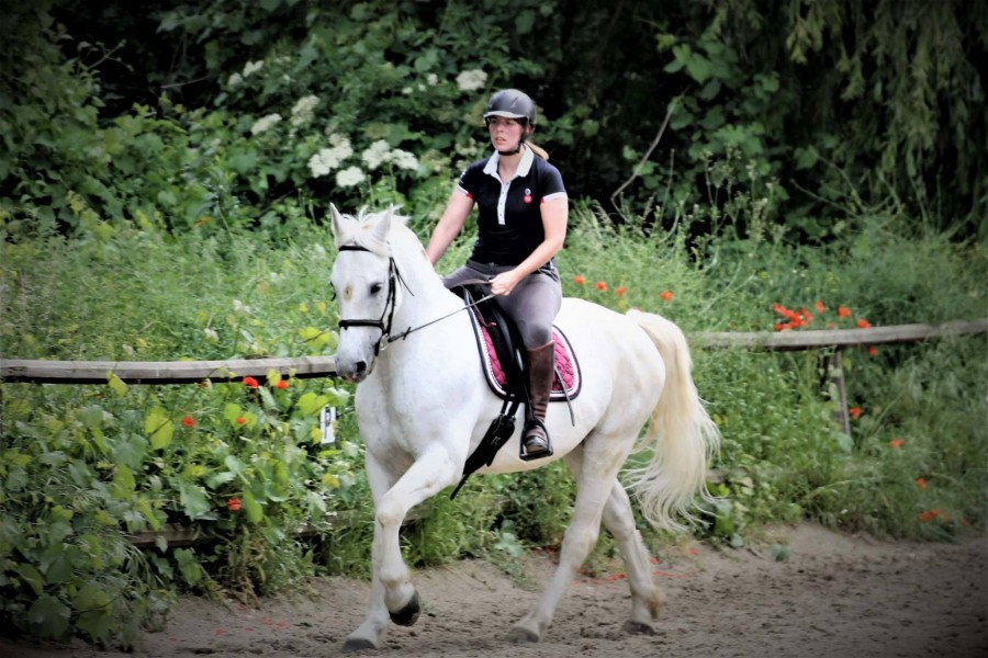 pour elle il faut que la jument soit autonome sur ce genre de cadence donc pas le droit d'utiliser mon talon, si elle retrograde stick. faut que la sente m'emmener sous les fesses et vraiment pulser et venir prendre son mors.
