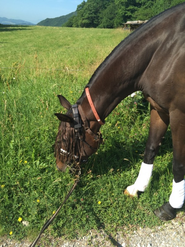 Après les championnats régionaux, il sera déferré des papattes arrières et ira au pré dans nos écuries actuelles, le temps de s'habituer à ne plus rentrer dans son boxe. Et mi-juillet on change d'écurie, direction une petite écurie à 10mn de chez moi tenue par une amie : des grands prés pleins d'herbe, une immense forêt au pied des prés, un cadre calme et magnifique, et une petite carrière.