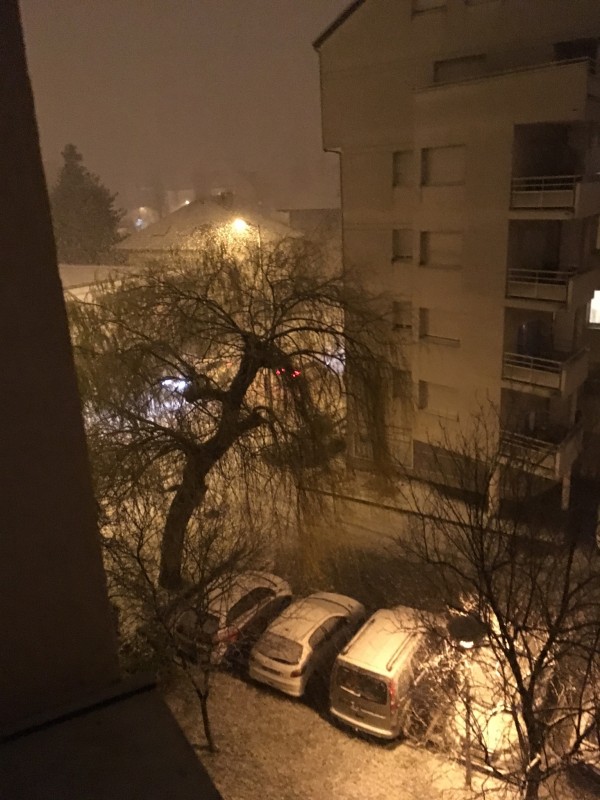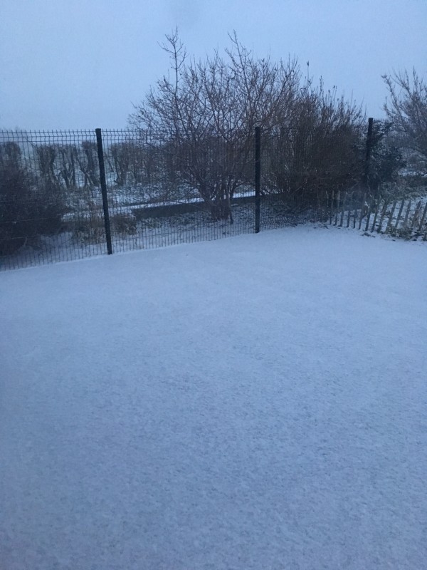 Ca tombe a fond ici ... bon la photo on voit pas grand chose mais en 5’ tout est blanc y compris la route et ca tombe a gros flocons...
