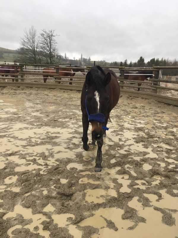 Aujourd'hui j'ai réussi à me motiver à aller aux écuries ! Gros pansage pour la grosse qui rentrait du paddock donc bien boueuse sur les membres et sous le ventre !
