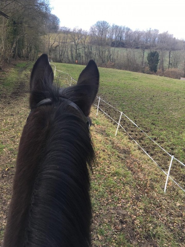 Je le vois qu'il utilise mieux son dos ! Petite séance en solo hier et il a été extra. Le président du club montait en même temps, et après le galop il m'a dit " c'était très joli et j'aime bien quand on aide avec la voix "