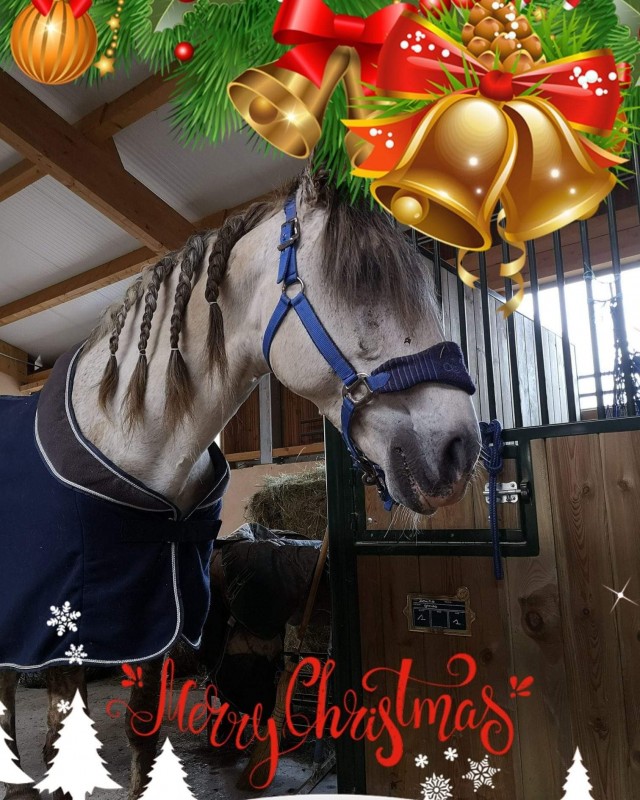 Ça fait 3 ans que j'ai acheté Tex ! Et aujourdhui pas grand monde aux écuries donc on a profité de la carrière gelée pour travailler bien le dressage. Du coup EED, hanches en dedans et cessions. Au galop travail sur galop de travail galop rassemblé galop de travail et allongement au galop. Elle a été géniale. Demain et jeudi ma dp fera les cours de dressage et de cso.