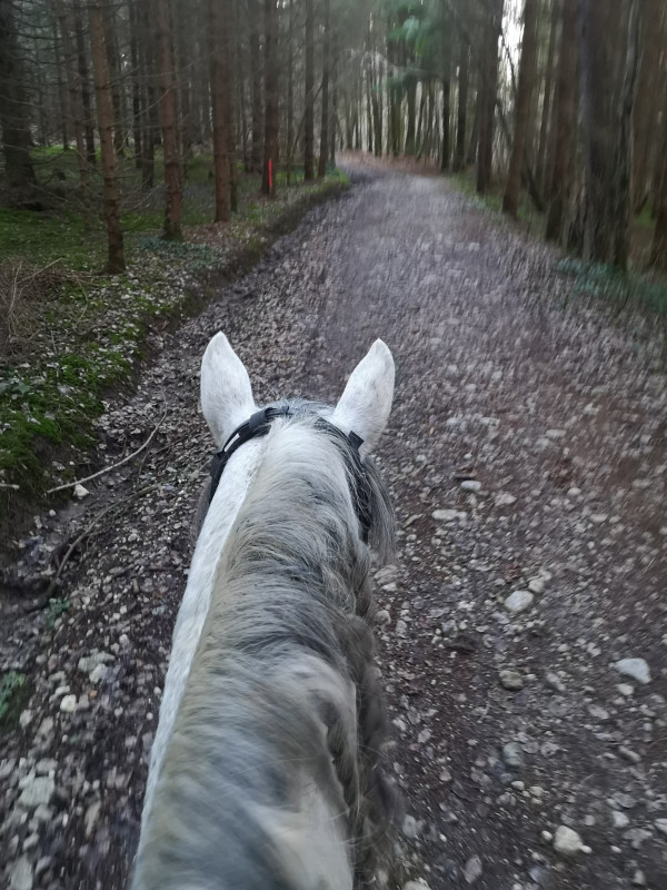 Aujourd'hui c'était balade avec 2 autres chevaux. Notre première balade dans cette "nouvelle" pension ! On était accompagnés d'une routière question balade (une petite anglo de 14-15 ans qui est dans le même pré) et une jeune (une PS de 3-4 ans qui découvre les balades depuis peu de temps et qui avait partagé un paddock avec mon gros)