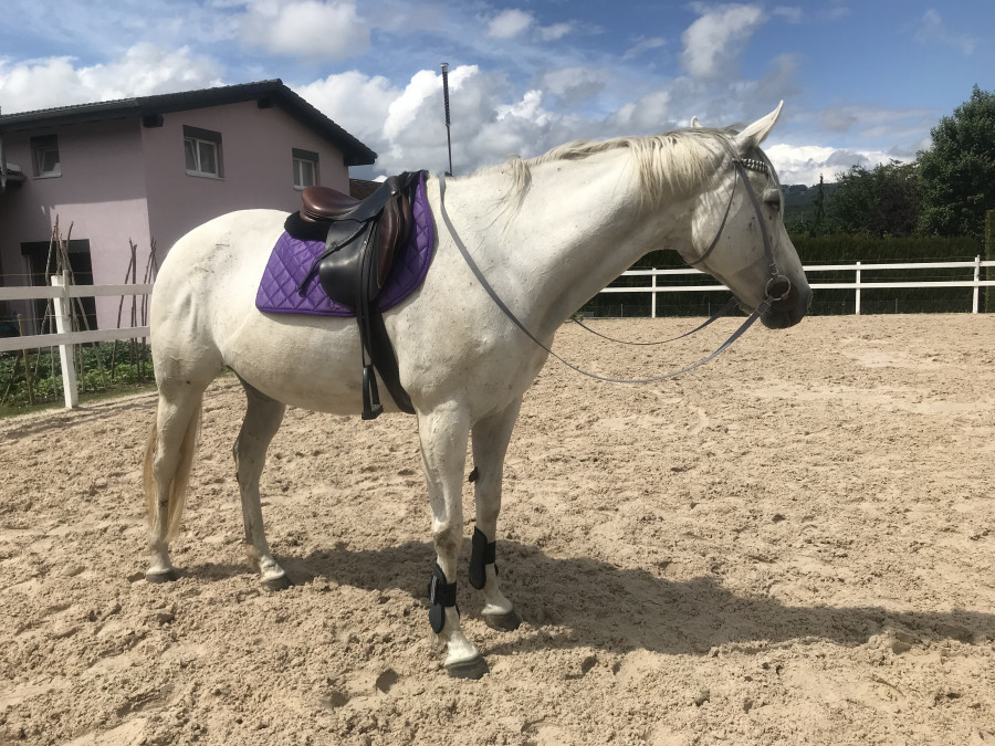 Irka 23ans, en état mais pas super musclée car elle s’était déchiré/ troué un muscle du poitrail l’automne dernier.