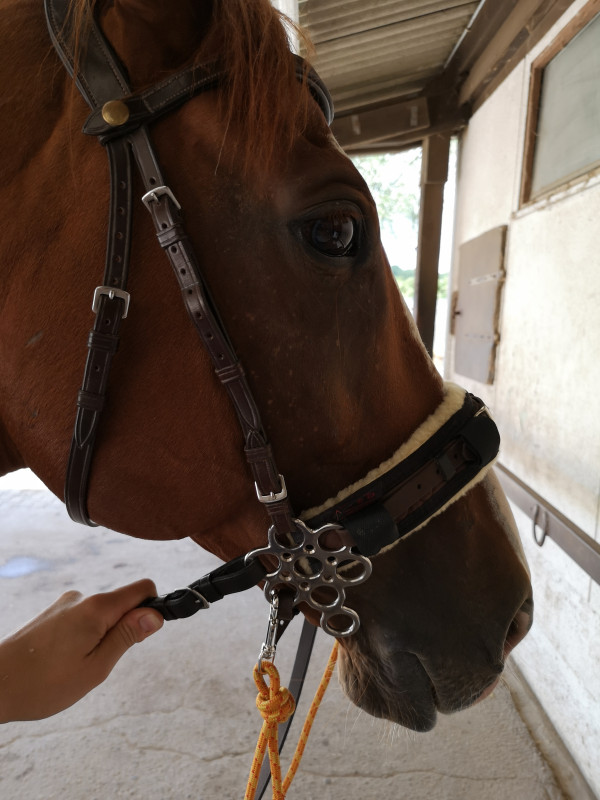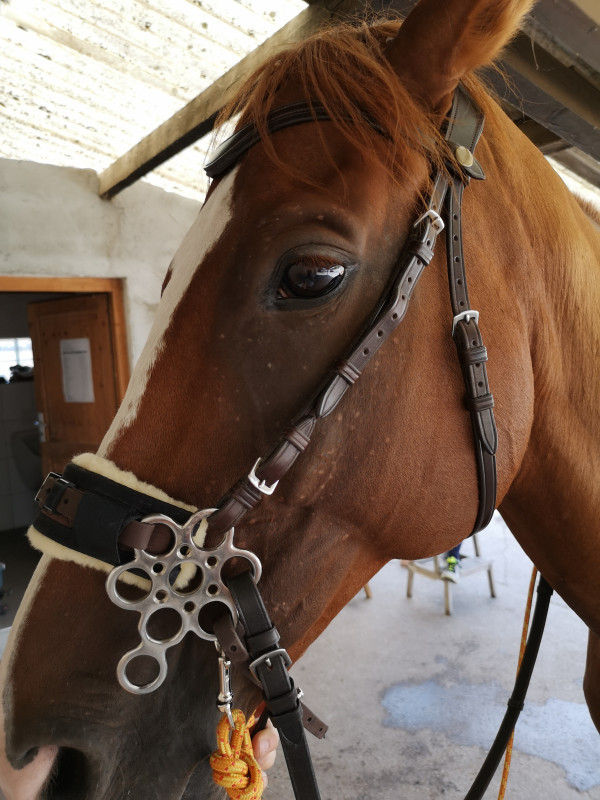 Il obéit bien et s'arrête...malgré le fait que le filet se balade dans tous les sens. La muserolle du hackamore a complètement bougé, j'avais aucune précision, et niveau contrôle, bah très clairement j'en aurais eu aucun.