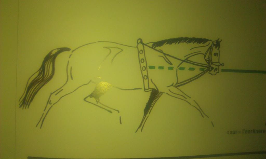 Moi j'utilise très souvent le gogue en longe, parce que je passe beaucoup de temps quand elle est montée à la relever, l'asseoir, lui remonter la nuque donc le gogue me permet de bosser dans l'autre sens, très bas. Faut dire que ma dinde réagit aux enrênements comme dans les livres, donc en gogue elle a la nuque sous le garrot et le nez loin devant. Un jour j'ai oublié que j'avais utilisé mon gogue sur un poney, j'ai commencé à la longer avec, elle était complètement bloquée mais n'a jamais tiré dessus, a toujours essayé de comprendre comment ça fonctionnait
