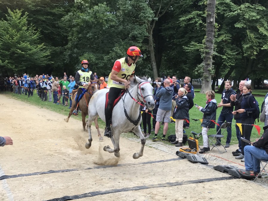 Et on a toujours un panneau qui indique qu'on est à 1km de l'arrivée, au cavalier de parcourir ce dernier km de façon à arriver à l'heure précise prévue, cela peut aller du pas au galop selon la façon dont on a tourné sur la piste (nature du sol, etc).
