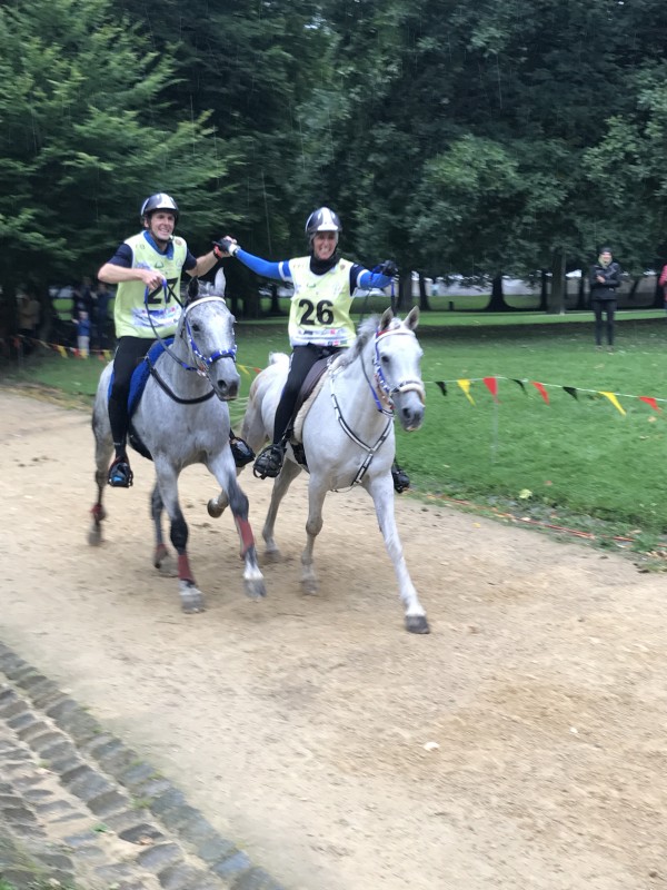 Bref, c'est une grosse balade intensive en rythme pour laquelle les chevaux peuvent se dispenser de boire. On fait boire et arrose copieusement (ne pas arroser au moment où ils boivent) en arrivant et avant d'aller au vet gate (contrôle véto). On doit passer au contrôle véto une demie-heure après être arrivé.
