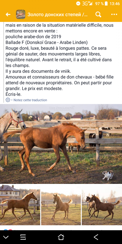 - une pouliche Don x arabe puis (la traduction fb n'est pas folichonne)