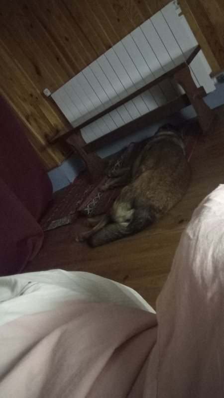 Là on a notre Daisy nationale, mamie labrador de 14 ans arrivée en abandon il y a un peu plus d'un mois qui prend doucement la pente descendante, mais on essaye même plus de la placer elle. C'est la mascotte, elle vit a l’accueil avec nous en permanence. Elle a eu du mal a nous faire confiance mais maintenant on est sa nouvelle famille, on ne lui fera pas le coup d'un autre changement a ce stade alors qu'on a cru la perdre y'a 15 jours. On l'accompagnera jusqu'au bout ... mais on peut pas tous les faire vivre a l’accueil en mode mascotte. (cette nounouille s'entendrait avec ses congénères ça fait des plombes qu'elle serait chez l'un d'en nous en fait ....). Mais le jour ou faudra l'aider a partir Dédé ... c'est comme nos chiens persos en fait.