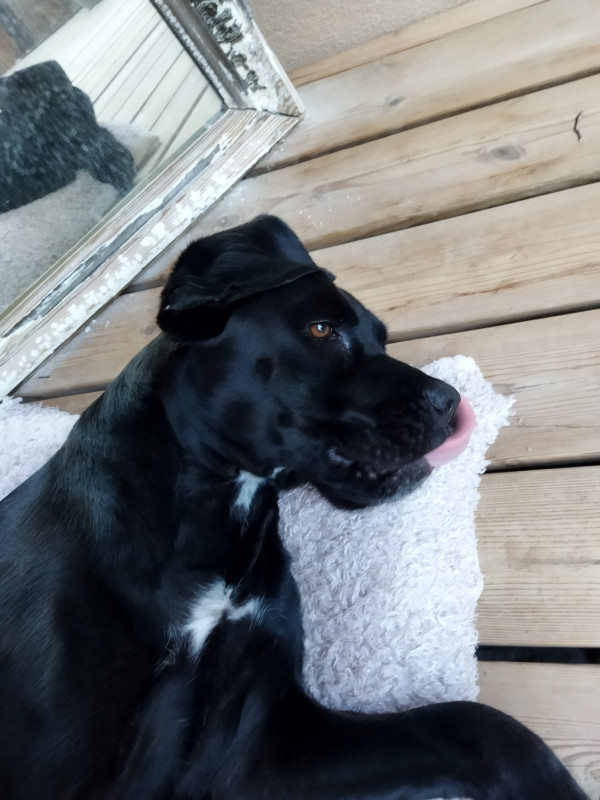 - Hapla (F) née en 2012. Husky x rotweiller x labrador x St Bernard.
