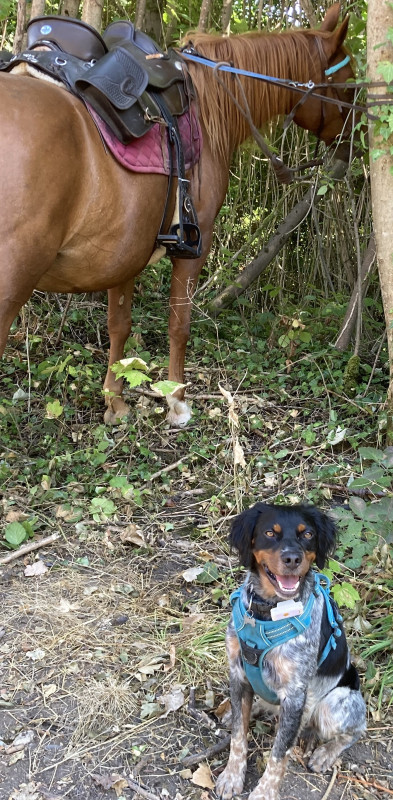 Shyva (F), née en 2021. Croisée beauceron x bouvier. Début canicross/VTT en loisir.