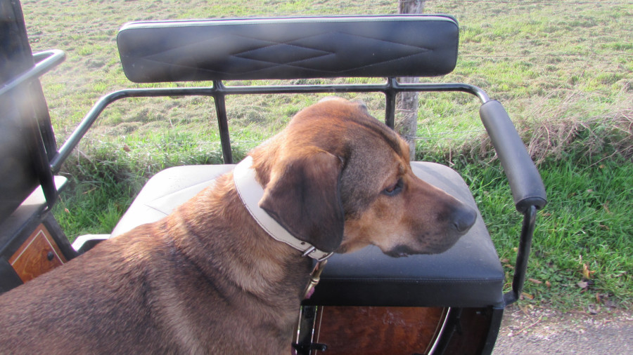 On profite du soleil ici aussi ! Roxy a fait une bonne balade avec nous (10 km en calèche, avec trot et galop). Elle adore ça, et ça la fatigue autant qu'une balade où elle marche étant donné qu'elle travaille son équilibre en permanence vu qu'elle reste debout pour regarder le paysage !