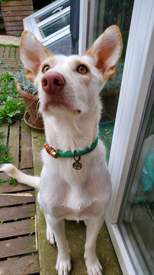 Pistache (F), croisée malinois, labrador et border, née en 2018.