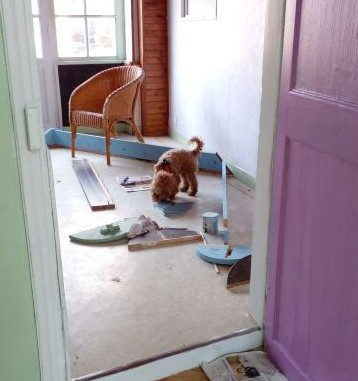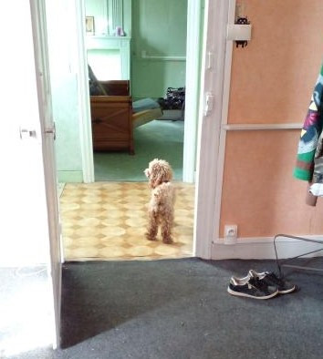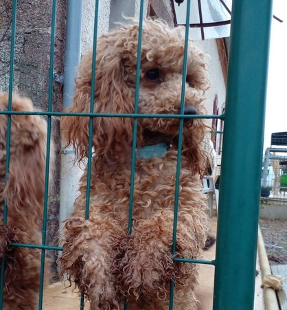 L'heureux élu et futur chien de garde de la chatterie (si si je vous jure), Ragnar, un caniche nain fauve orangé qui va sur ses 3 ans. Il a fait sa première balade en laisse loin de la ferme jusqu'à ma futur maison pour qu'il découvre pendant que je faisais quelques rénov' Sur le chemin juste un peu impressionné par les tracteurs et voitures qu'on a croisé, on a croisé un berger allemand et un patou mon Ragnar a à peine réagis.