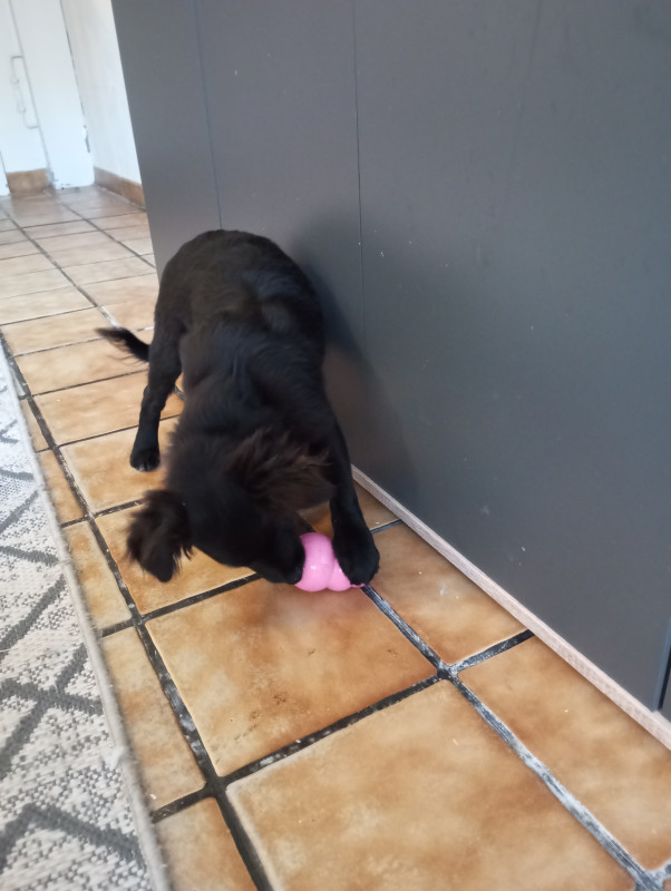 C'est un petit chiot complètement introverti je crois ( bon il est là depuis 48 h à peine, j'espère qu'il va s'épanouir un peu).