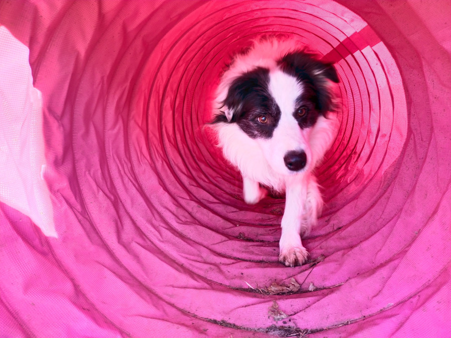 Patty (F), border collie née en 2019. Pratique l'agility.