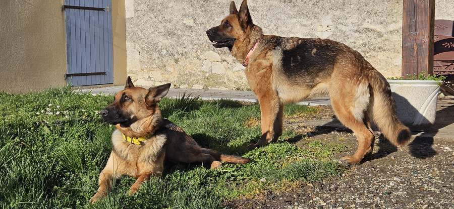 Prunelle (F), croisée berger de Roumanie, née en 2022. Veulent se mettre le canicross et l'agility.