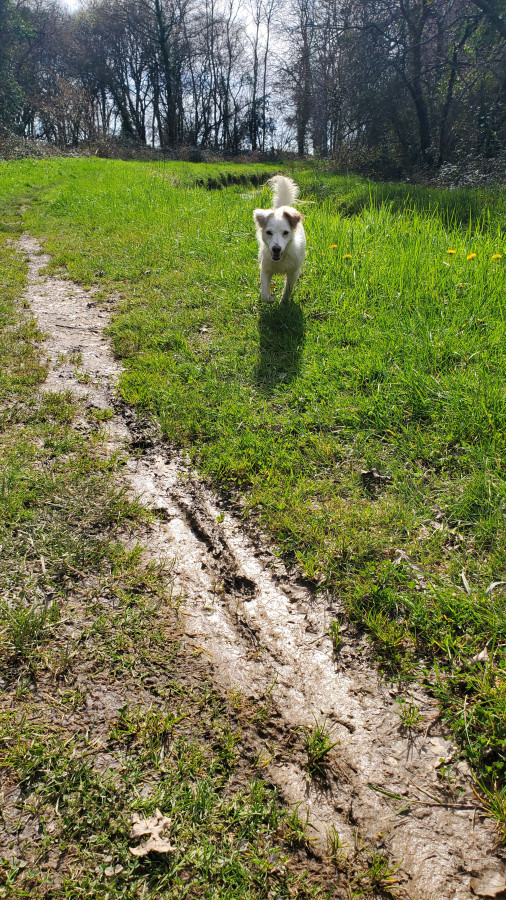 - elle a eu des moments pas maxi fun : entorse du genou pour moi et rotule pour Orion (opérée). Donc moi "pas à pied" visiblement :p + Orion en cage donc elle est assez seule à la maison et Eugé a facilement 1h30/j de réeducation d'Orion + priorise sa présence à la maison pour lui (normal). On ajoute en plus un temps immondissime, crue des rivières donc quasi tout nos espaces de libres impraticables voire dangereux. Donc elle a surtout promené en laisse à proximité (par contre nette amélioration de son comportement, je suis super contente, elle est nickel !), et pas forcément longtemps, et toujours seule.
