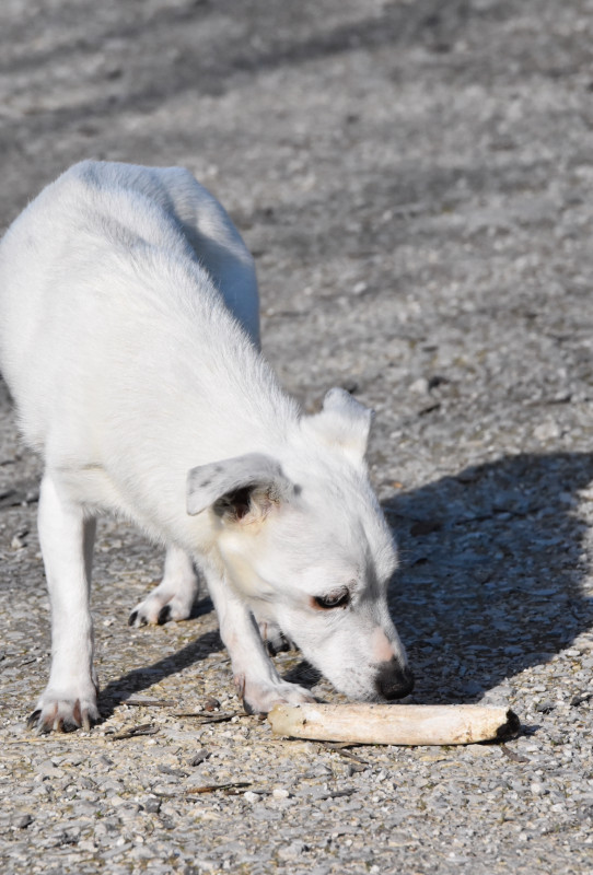 Prunelle (F), croisée berger de Roumanie, née en 2022. Veulent se mettre le canicross et l'agility.