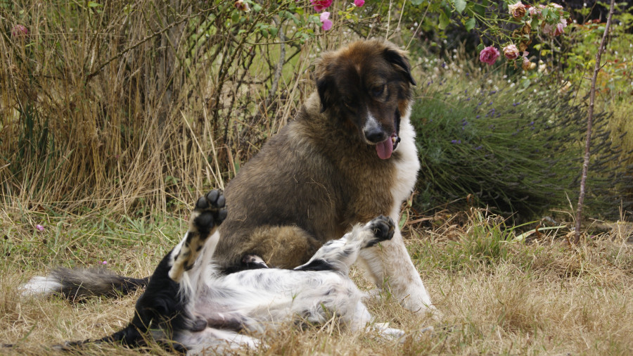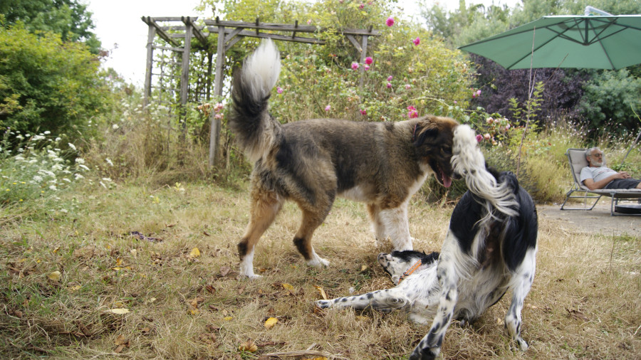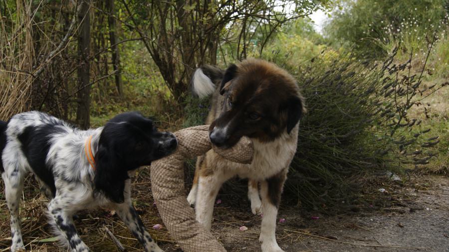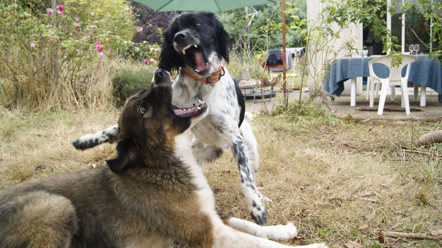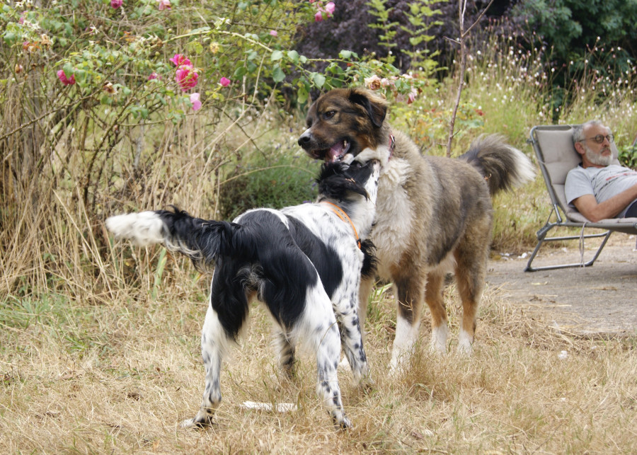 Je leur ai filé de la mastication (sous surveillance), ils sont allés la manger tous ensemble. C’est confort les chiens sociables