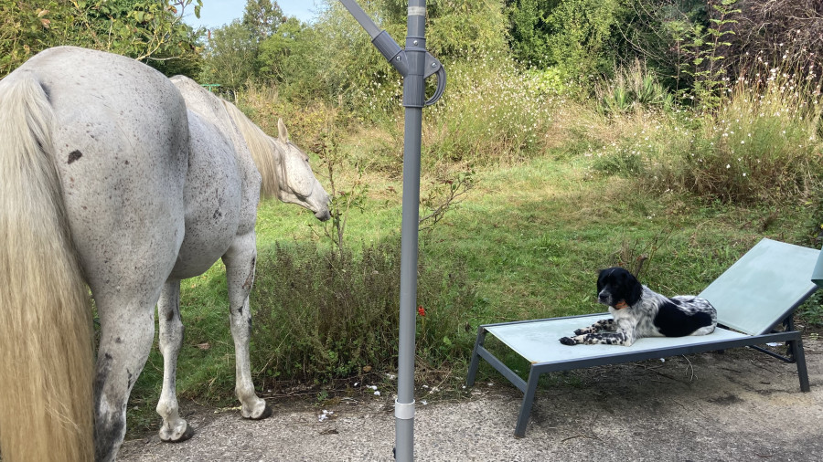En plus on s’est fait foncer dessus par un setter, un malinois et un bouvier bernois, heureusement que j’ai que des poilus sympas La proprio est arrivée immédiatement, leur jardin est en travaux et n’est plus clôturé temporairement. J’étais contente de m’asseoir en arrivant même si les anti-inflammatoires sont hyper efficaces.