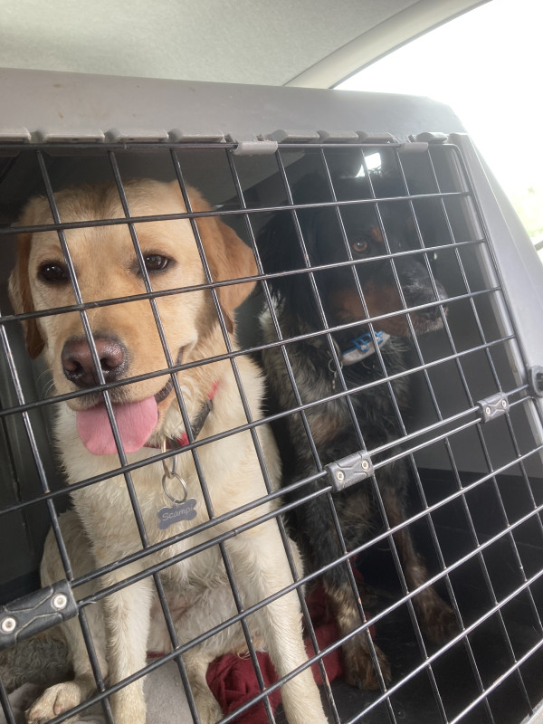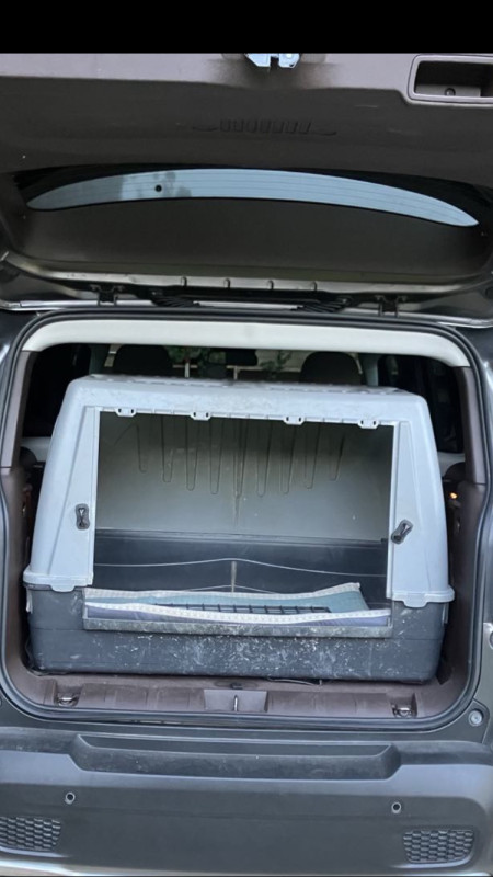 Après la hauteur au garrot ça suffit souvent, j'ai des chiens qui font 70 au garrot et mes caisses font 65, ils baissent la tête quand ils rentrent dedans, et ne se mettent pas debout c'est tout.