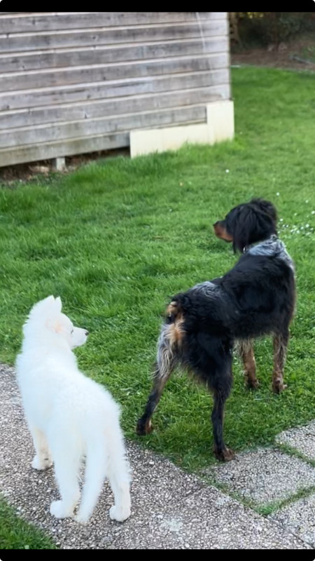 Hier balade rencontre chiot ! Arcane était super heureuse, en plus on a croisé deux chienne super sympa avec qui elle a pu interagir aussi, donc c'était vraiment chouette.