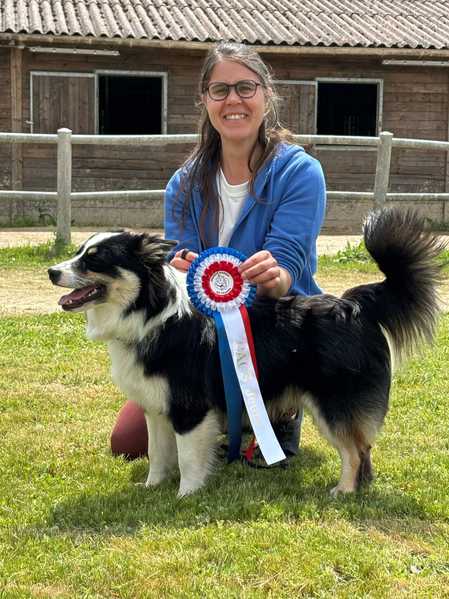 Il fait 1er Exc (Juge :"vous avez un très joli chien, avec un très beau caractère!"), CACS-J et meilleur jeune. On était tous seuls dans notre catégorie, ça facilite un peu les choses, mais ce juge ne donne pas systématiquement les CACS donc c'est une belle récompense ( juge : "Première expo pour votre chiot c'est ça ? Allez, premier CACS !" )